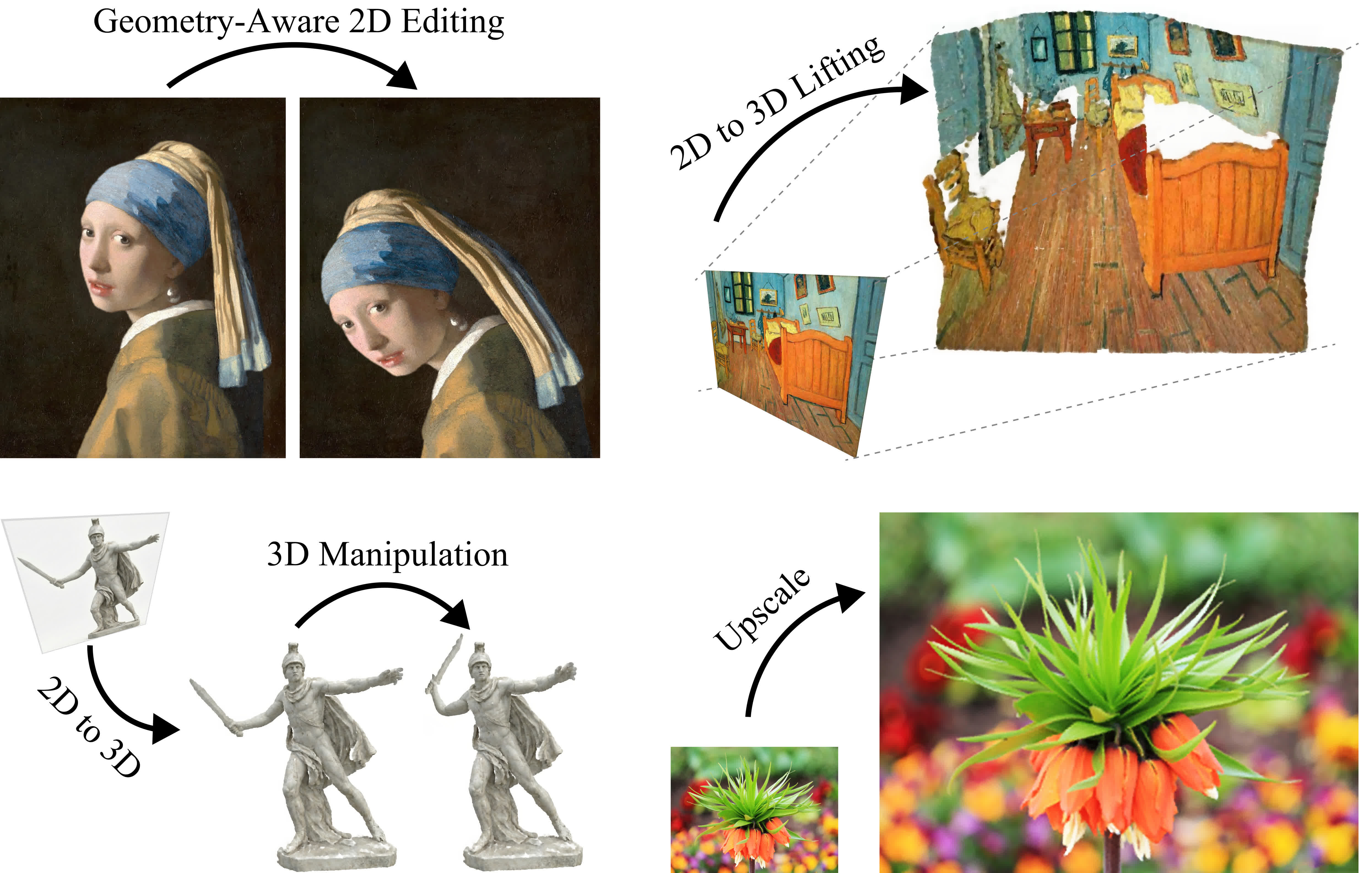 method supports geometry-consistent transformations, seamless super-resolution, and integration with